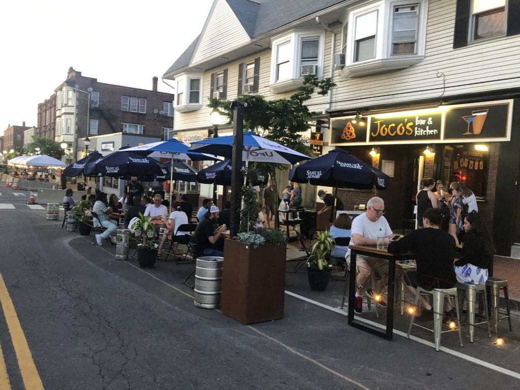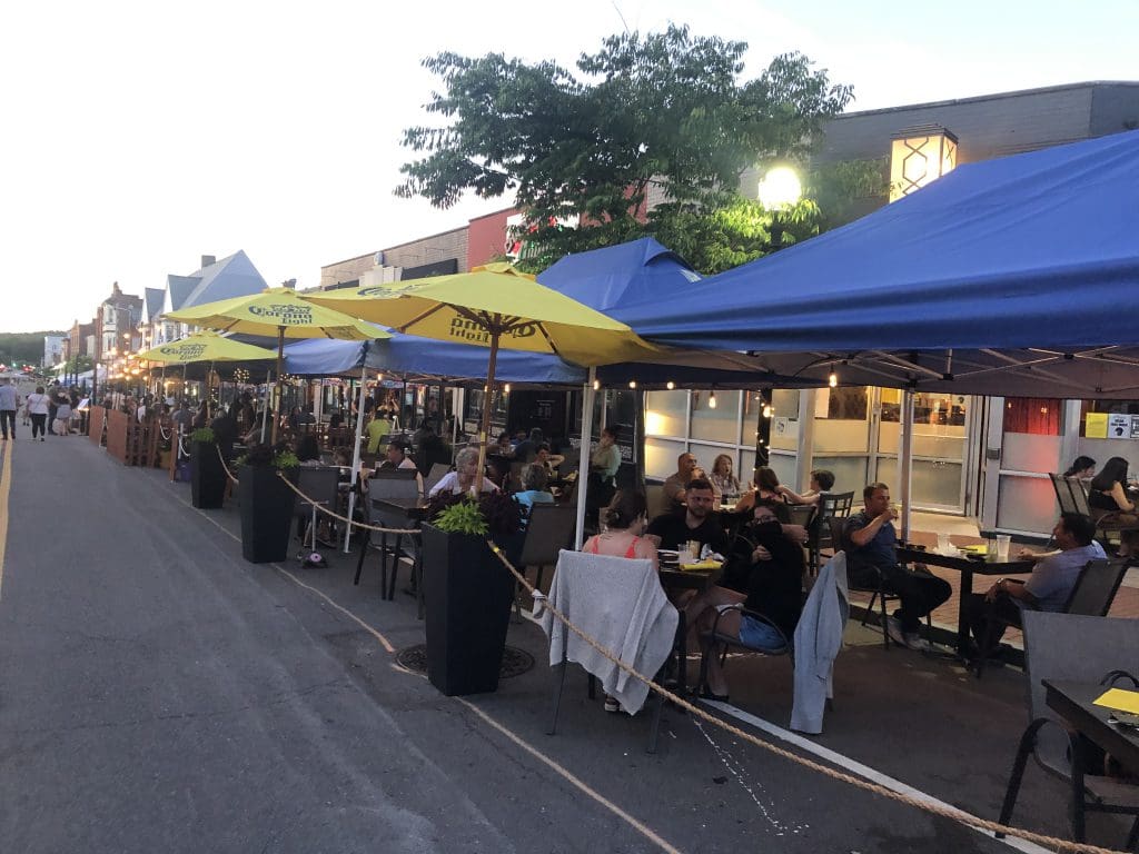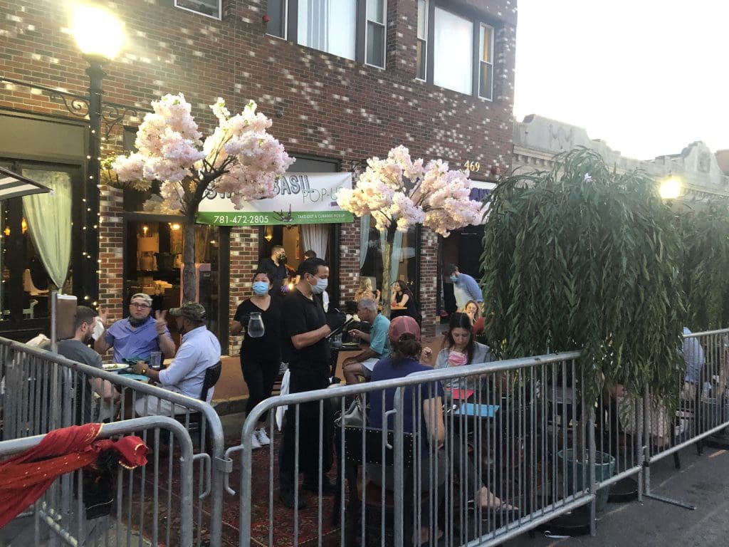 Moody Street in Waltham has long been a key restaurant destination for the Boston area. The storefronts are packed with eateries, most smaller but a few chains as well. In response to the pandemic, the City of Waltham shut down Moody Street to cars and gave it over to the restaurants, turning it into a pedestrian-only boulevard with outdoor seating.